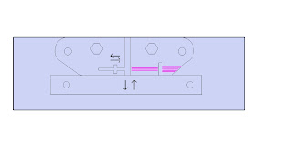 The adjustable parts would have to have two halves in order to capture an adjustment screw in between them. The idea being you put the screw in place and then glue the two halves together and the screw then cannot be removed but it can supply pressure left and right on a nut which pushes and pulls the back roller in and out in relation to the fixed roller which can only move up and down.