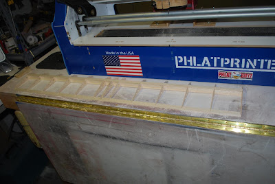 The Phlatprinter \\\ is back up and cutting foam once again. Hopefully, the epoxy will take to the nylon this time and I won't need to replace the pulley with the polycarbinate.